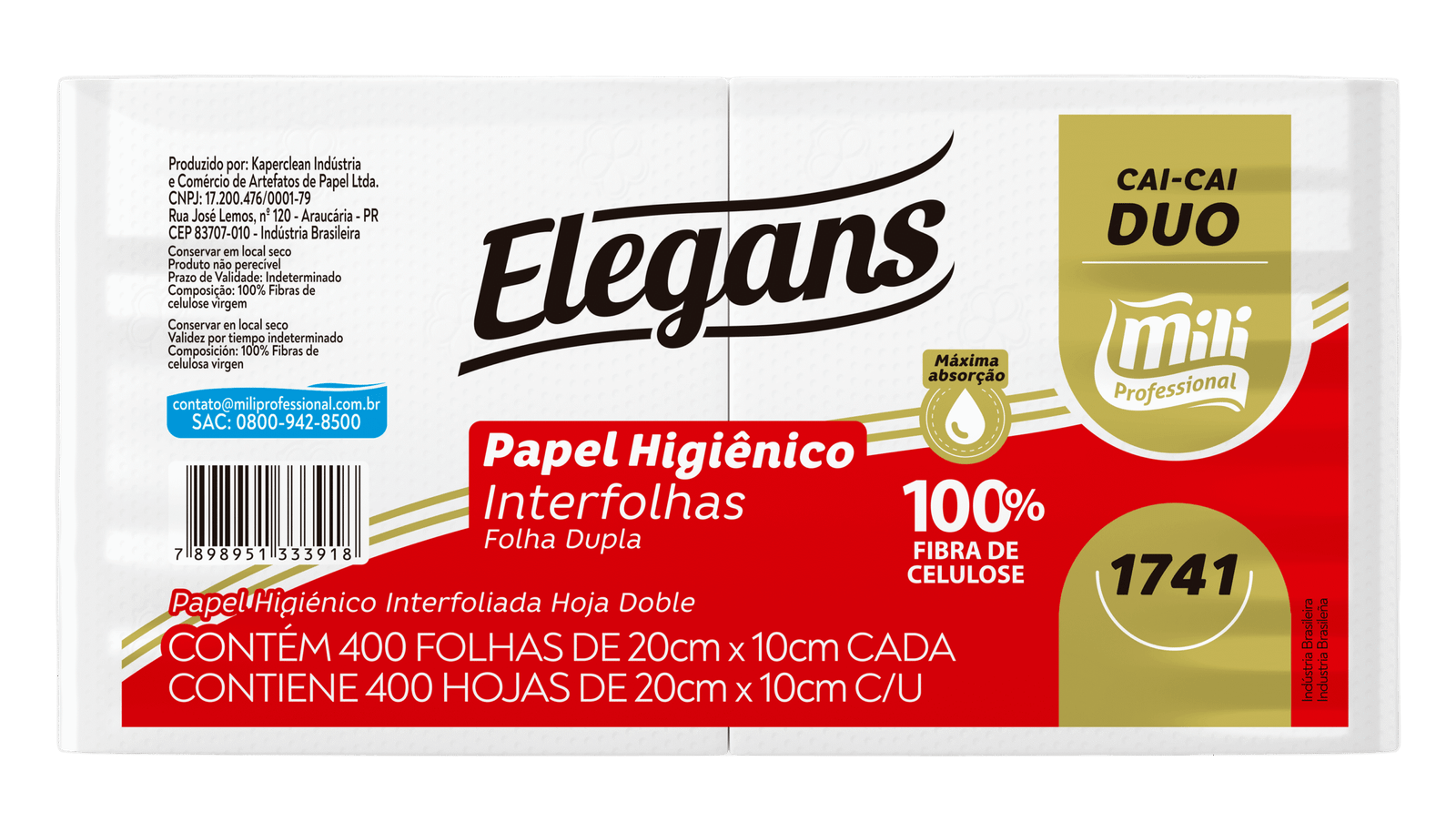 Papel Higiênico Interfolhado Mili Duo Folha Dupla, oferece alta maciez, resistência e absorção. Produzido com 100% fibras celulósicas vegetais, tem folha dupla e textura lisa para mais conforto e economia no uso diário. Ideal para ambientes comerciais e residenciais.